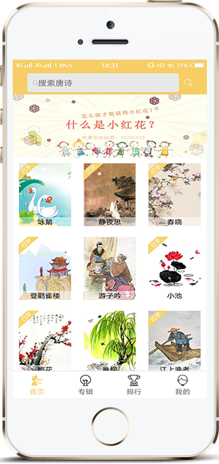 按照唐诗的要求划分为单个专辑,让孩子的学习更有目的,提高学习效率,掌握更多知识。